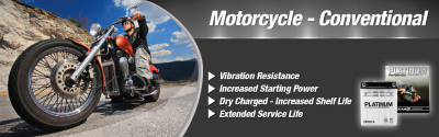 Your choice of battery will be determined by the type of bike you ride, as well as the type of rider you are. We have a comprehensive range of Platinum Conventional and AGM batteries that offer a choice of power and service life to suit any application.