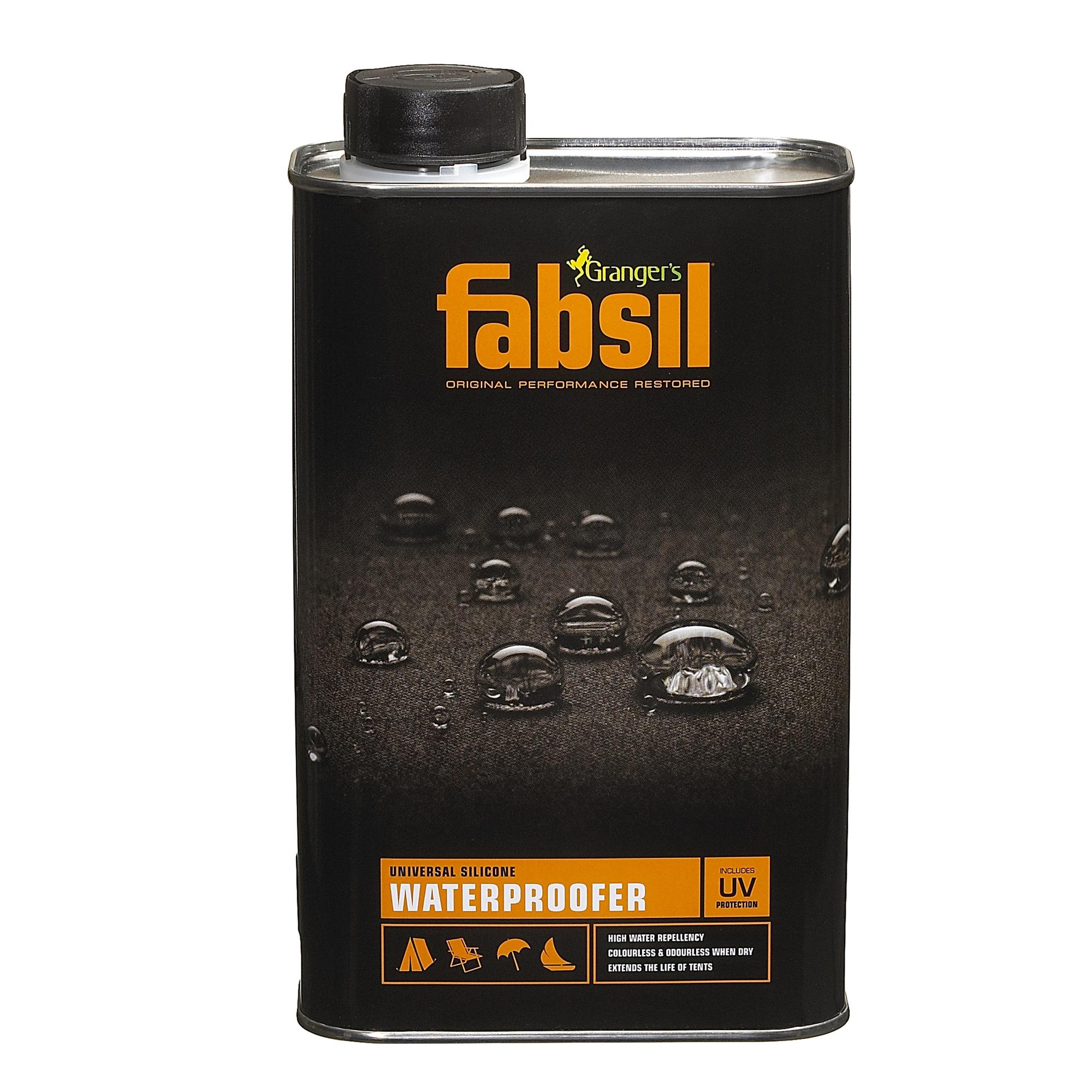 - 1 liter of Fabsil will cover up to 18 square metres of nylon, 7.5 square metres of light weight canvas, or 5 square metres of medium weight canvas.