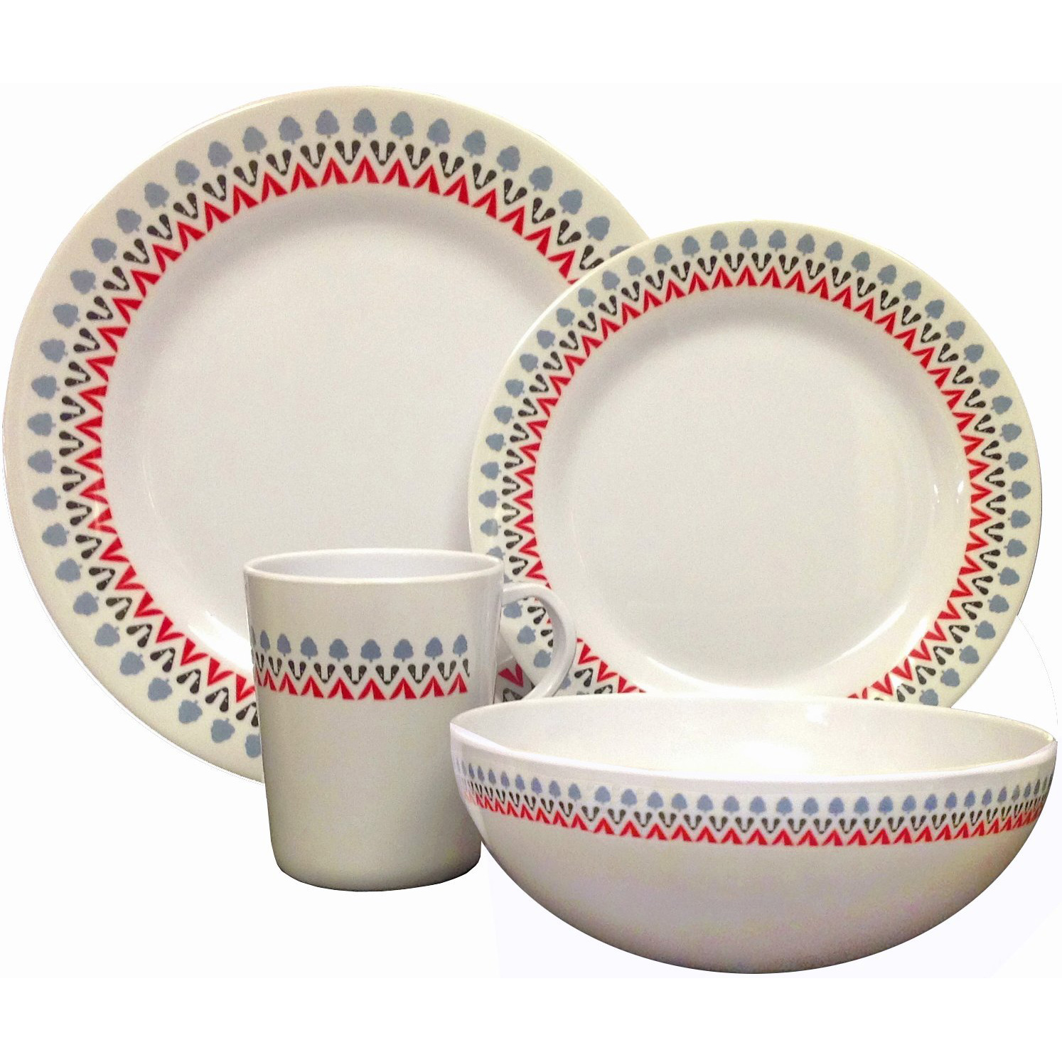 This dishwasher safe set includes 2x 10″ plates, 2x 8″ plates, 2x bowls & 2x mugs.