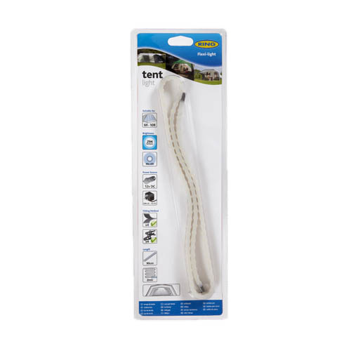 For use in 6/10 man tent, powered by 12v via a power plug, or 230v mains adaptor (both included). 90 LEDs on a 90cm flexible strip has light output of 294 lumens. Includes clips, adhesive pads, or tape for fixing. 2 mtrs of cable for positioning.